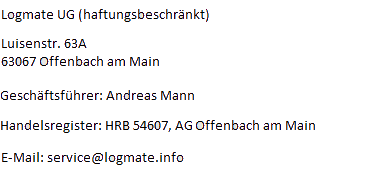 Wir freuen uns sehr über Ihr Interesse an unserem Unternehmen. Datenschutz hat einen besonders hohen Stellenwert für die Geschäftsleitung der logmate. Eine Nutzung der Internetseiten der logmate ist grundsätzlich ohne jede Angabe personenbezogener Daten möglich. Sofern eine betroffene Person besondere Services unseres Unternehmens über unsere Internetseite in Anspruch nehmen möchte, könnte jedoch eine Verarbeitung personenbezogener Daten erforderlich werden. Ist die Verarbeitung personenbezogener Daten erforderlich und besteht für eine solche Verarbeitung keine gesetzliche Grundlage, holen wir generell eine Einwilligung der betroffenen Person ein.